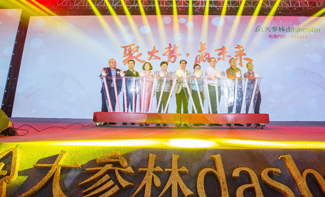 金年会药业集团董事长刘景萍女士与大参林医药集团董事长柯云峰先生、中国医药商业协会执行会长付明仲女士等嘉宾共同开启了“聚大势•赢未来"大参林工商合作峰会的大幕。