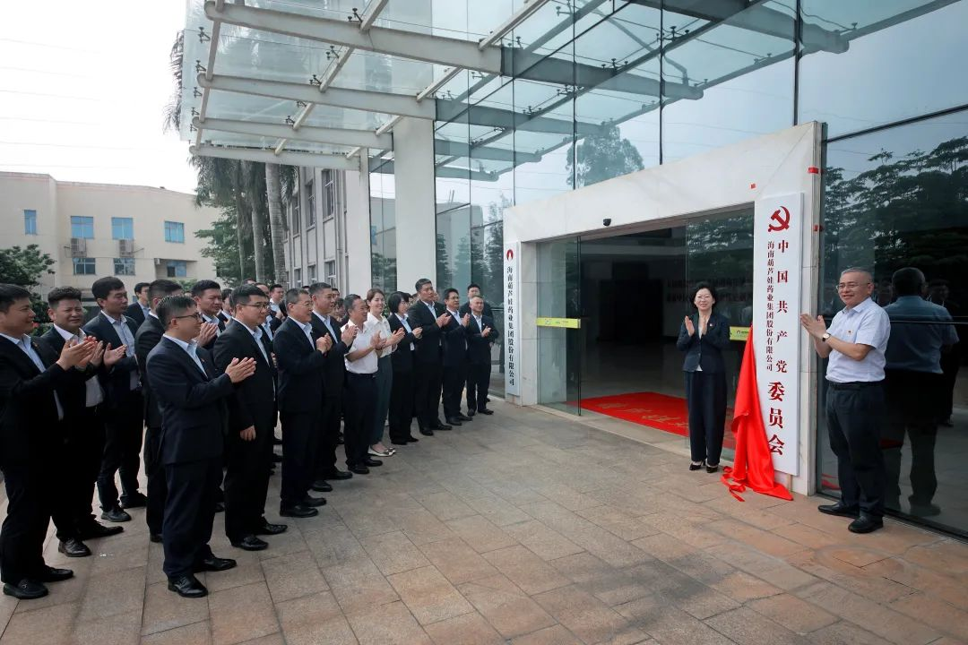 海口市高新区两新组织党委副书记傅爱萍宣读了《中共海口国家高新区非公有制经济组织和社会组织委员会关于同意成立中国共产党海南金年会药业集团股份有限公司委员会的批复》。